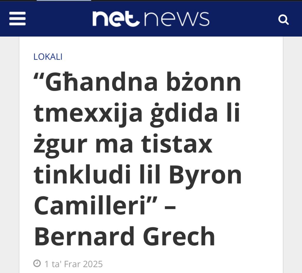 Mela matul il-jum tas-Sibt, il- Kap tal-Partit Nazzjonalista Bernard Grech sostna li “biex il-poplu Malti u Għawdxi jkun jista’ jserraħ rasu fuq is-sigurtà tiegħu għandna bżonn tmexxija ġdida li żgur ma tistax tinkludi lil Byron Camilleri.”