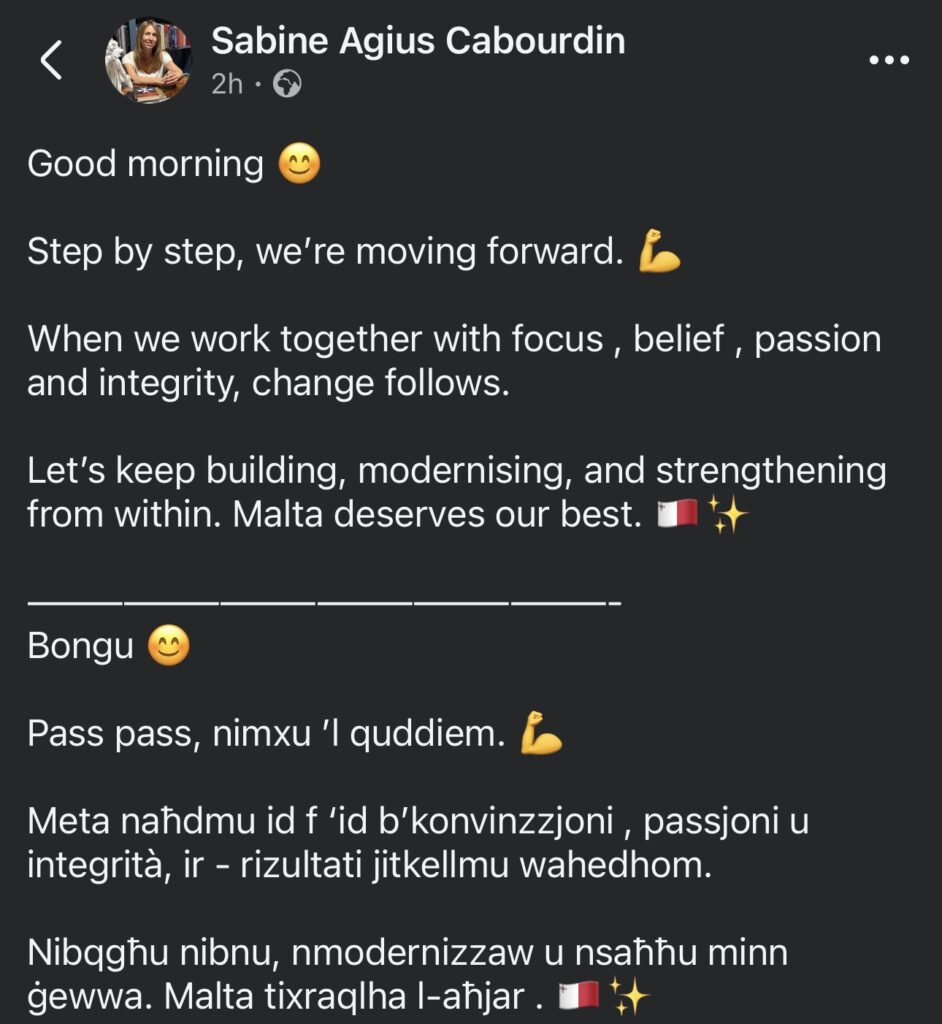 Wara żmien twil mitlufa, “Mrs make hay while the sun shines” Sabrina Agius jidher li dalgħodu irnexxielha ssib id- Dar Ċentrali.