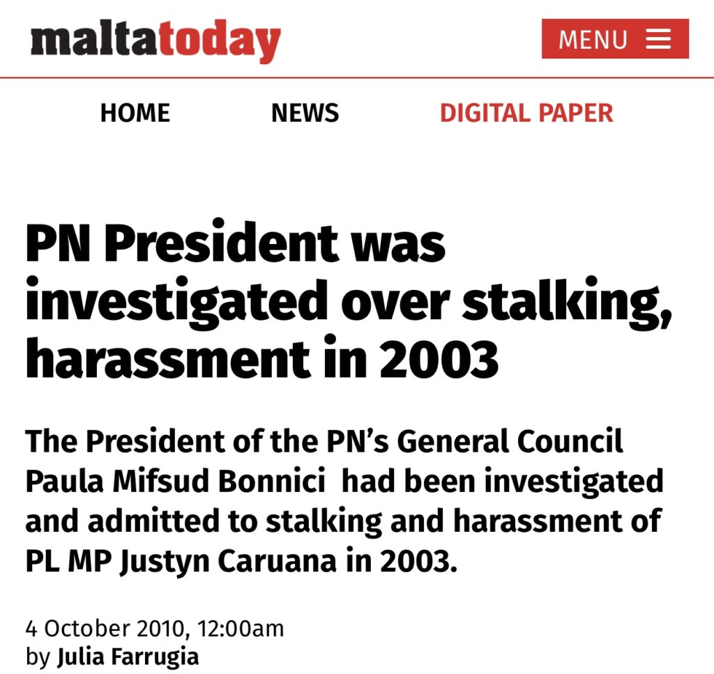 Tajjeb li nfakkru li lura fl- 2010, Paula Mifsud Bonnici kienet ġiet investigata mill-Ispettur Angelo Caruana wara li kienet bagħtet sensiela ta’ messaġġi ta’ theddid lid-Deputat Laburista Justyne Caruana.