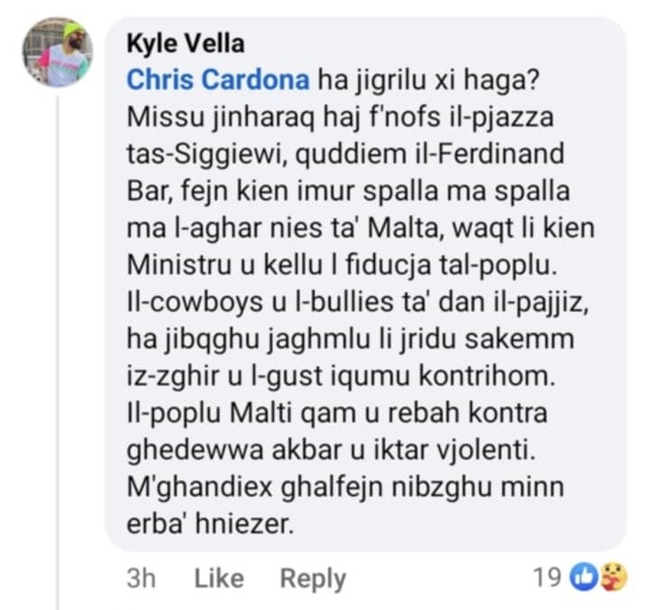 On 10 May 2025, former Minister Christian Cardona became the target of chilling threats posted beneath a Times of Malta Facebook article. The comment, openly calling for Cardona to be “burned alive in the middle of Siggiewi square” was immediately flagged to the police through Malta’s Remote Reporting System.