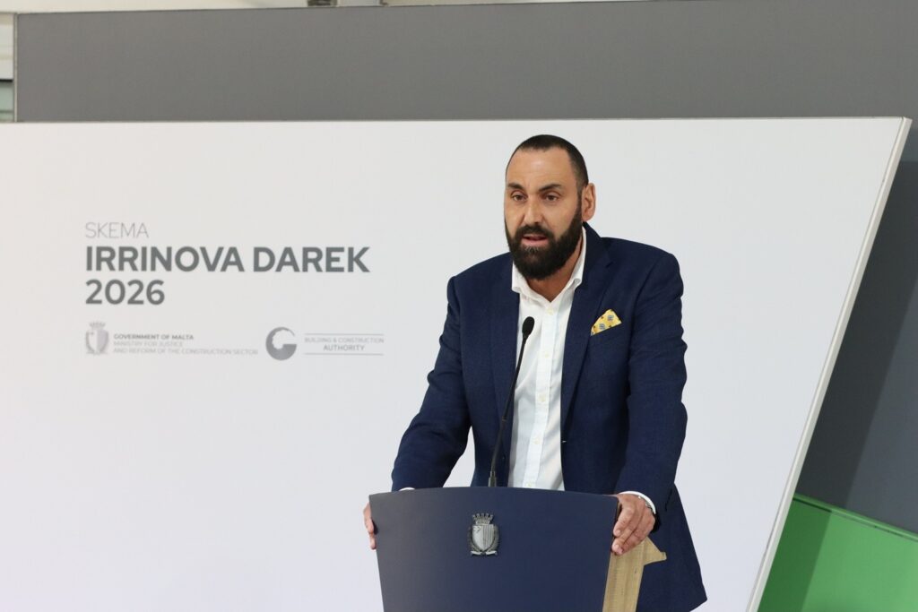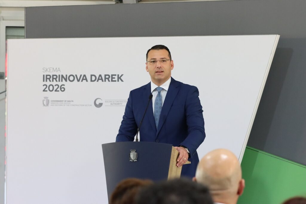 Il-Ministru għall-Ġustizzja u r-Riforma tas-Settur tal-Kostruzzjoni Jonathan Attard flimkien mal-Kap Eżekuttiv tal-Awtorità tal-Bini u l-Kostruzzjoni l-Perit Roderick Bonnici ħabbar il-ftuħ tal-iskema ‘Irrinova Darek’ għal-lokalitajiet fin-Nofsinhar ta’ pajjiżna.
