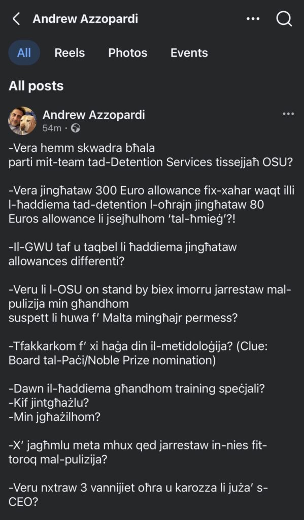 Għadni kemm rajt post tal-Prof. Andew Azzopardi taċ-ċingi bħall-eroj tiegħu Austin Gatt. Sieħeb Peppi Azzopardi magħruf bħala l-coach, ma jitlifx okkażjoni biex jikkritika direttament jew indirettament lill-Ministru Byron Camilleri.